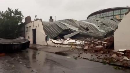 La ciudad fue afectada por vientos intensos de más de 140 km/h y precipitaciones, lo que produjo la voladura de techos, caída de árboles y postes, como así la interrupción del suministro eléctrico.