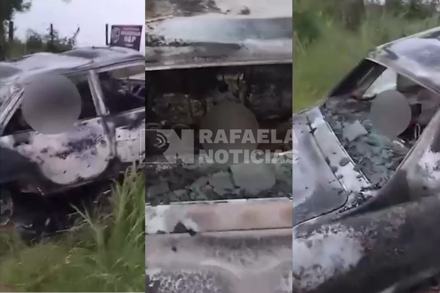 Un trágico episodio conmocionó a la región en la mañana de este miércoles. Un auto completamente incendiado fue hallado en a zona rural entre Rafaela y Lehmann (continación de calle Tettamanti, donde además un poste de luz de gran porte resultó derribado tras el impacto.