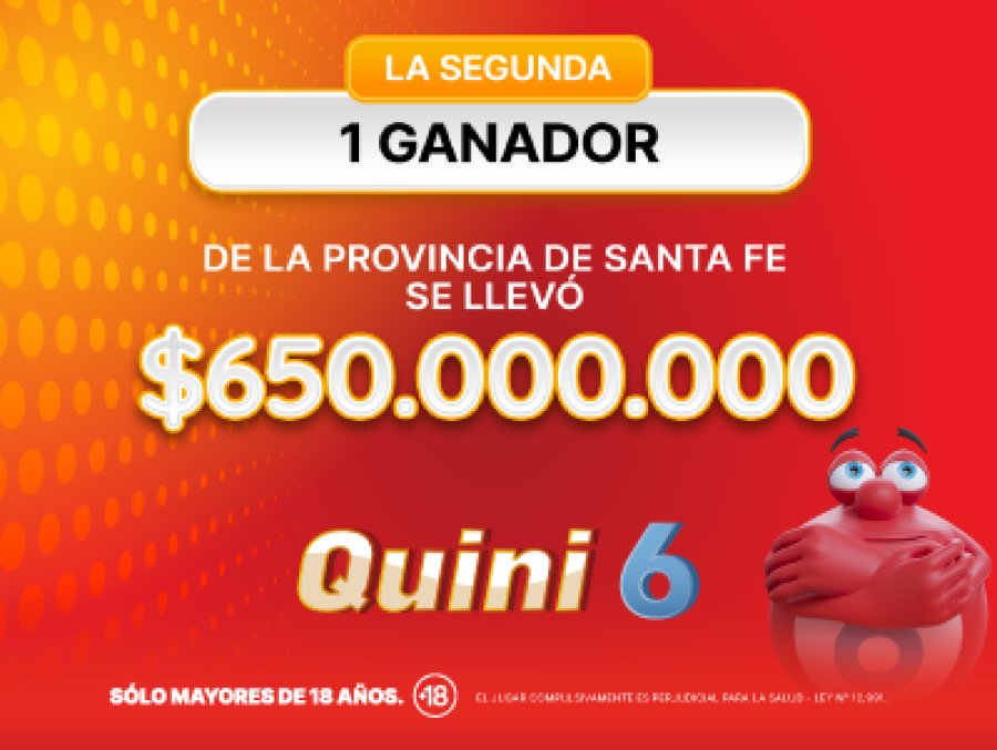 Durante el sorteo de Quini 6 de esta noche un apostador se hizo acreedor al primer premio con seis aciertos de la "Segunda" con un premio de $650 millones.