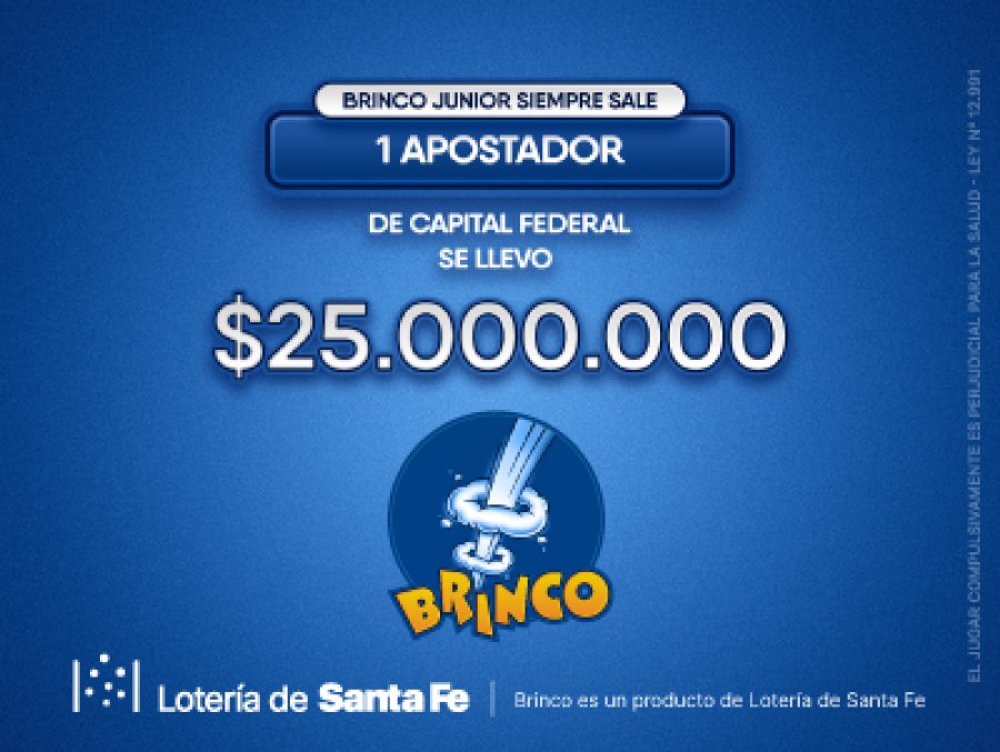 Lotería de Santa Fe les informa que durante el último sorteo de Brinco sólo un apostador con 6 aciertos se llevó el premio total del Brinco Junior Siempre Sale