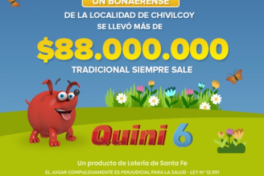 Lotería de Santa Fe informa que hace instantes, durante el sorteo de Quini 6 un feliz apostador se adjudicó el premio con seis aciertos de la modalidad «Siempre Sale» de más de $88 millones acertando a los números 04 – 06 – 11 – 15 – 19 – 27.