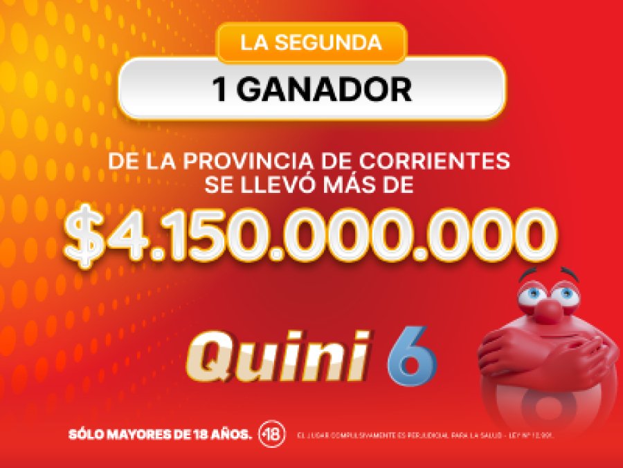 Un apostador se hizo millonario acertando los 6 números de la modalidad «La Segunda» que fueron el 08-12-19-22- 24-32. El ganador es de la ciudad de Curuzu Cuatia, provincia de Corrientes y ganó un premio increíble de más de $4.150.000.000.                                .