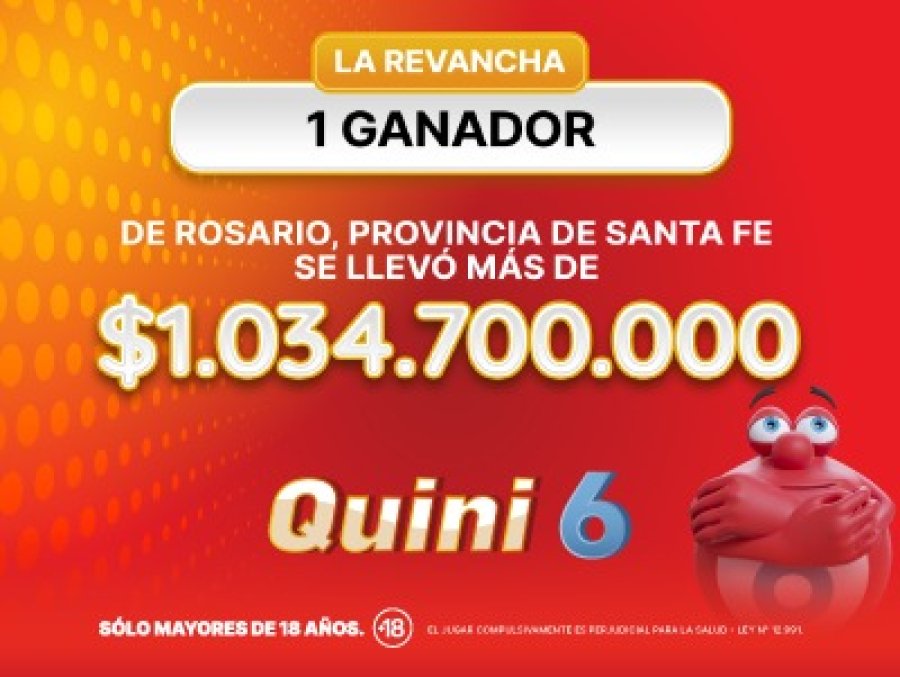 Durante el sorteo de Quini 6 de esta noche un rosarino se hizo acreedor al primero premio con seis aciertos de la «Revancha» con un premio de más de $1.034 millones.