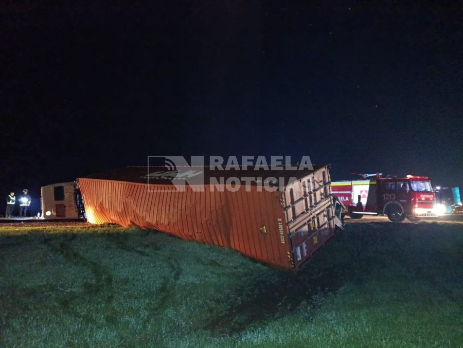 Según informó la Dirección General de Bomberos Zona Centro Norte, al arribar al lugar la dotación encontró un camión Ford Cargo 1730 volcado sobre el lateral del conductor, con la cabina apoyada sobre la cinta asfáltica y el chasis ubicado en la banquina.