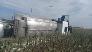 En la tarde de este martes se registró un importante accidente en el cruce de los Caminos Pùblicos Nº 5 y 27 (calle Tettamanti), en la traza del tránsito pesado al noreste de la ciudad. Ùnica parte fue un camiòn VW de transporte de leche cruda, perteneciente a la empresa Transporte Dovis, conducido por Julio López, de 40 años, domiciliado en Ceres.