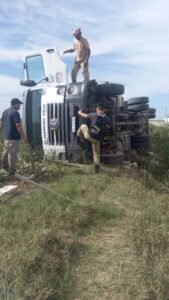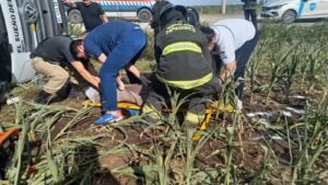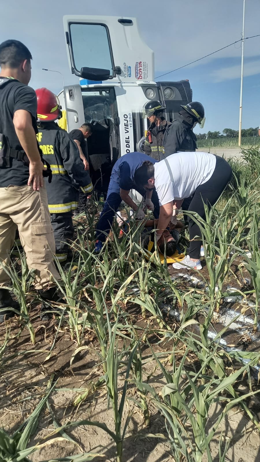 El camión terminó volcado en la cuneta y el conductor, con algunos golpes y escoriaciones, quedó atrapado en el interior de la cabina, por lo cual debió ser rescatado por personal de Bomberos Zapadores, que trabajaron en el lugar, junto con personal del SIES 107.